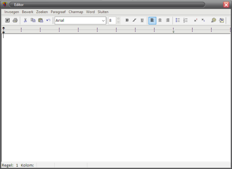 De interne Editor is een volwaardige RTF editor die het mogelijk maakt om niet alleen tekst maar ook afbeeldingen te plaatsen/bewerken.