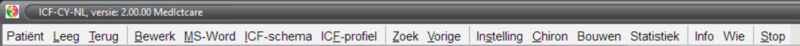 De menubalk geeft de diverse mogelijkheden weer die de ICF+ biedt. In de volgende secties worden deze menuitems stuk voor stuk besproken.