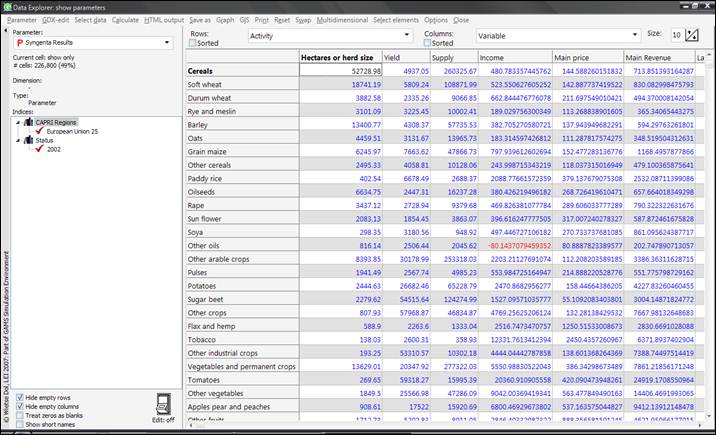 Open a GDX file, select a parameter and make a selection which elements you want to view (i.e. a data filtering system). Can also be used in combination with SQL2GAMS.