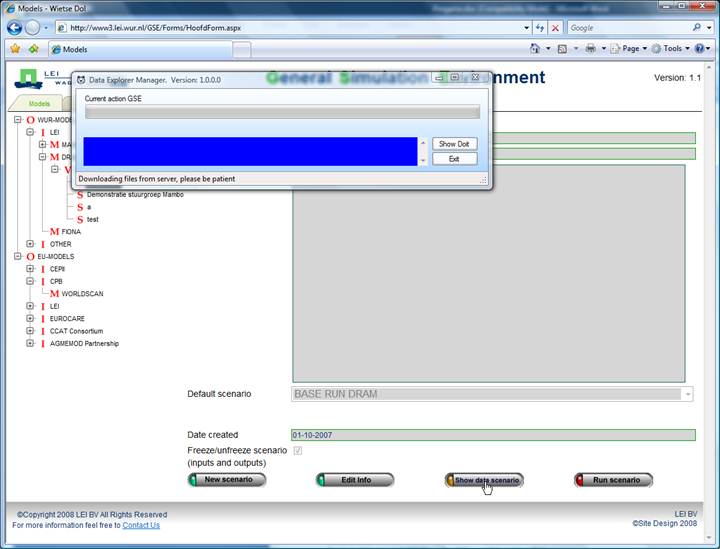 DEM communicates with web-GSE and web-MetaBase, i.e it downloads GDX and other files from the web and start the DataExplorer.
