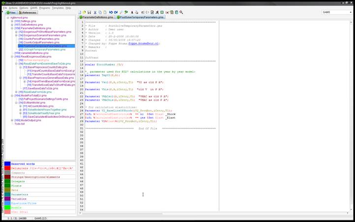 GAMS editor with a bulk of interesting features, see the documentation: gtree.doc.