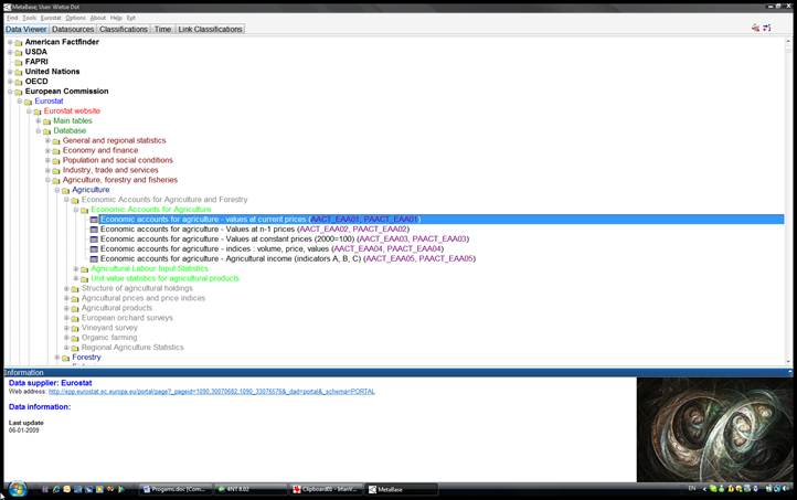 Single user interface for all kind of different data suppliers. See MetaBase documentation: metabase.doc and “new in MetaBase 2”. If you have an interest in this product please contact us: LEI.software@wur.nl. The software and data is too big to put on the internet, you could try http://www3.lei.wur.nl/metabase/ our web version of MetaBase.